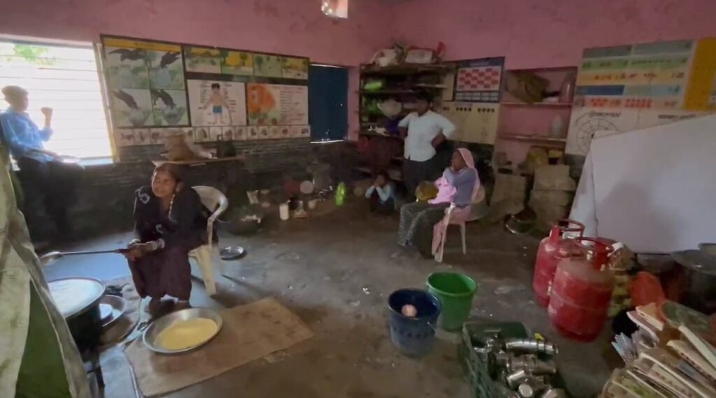 - बैठक व्यवस्था अन्य जगह पर पोषाहार के लिए यहीं आते बच्चे